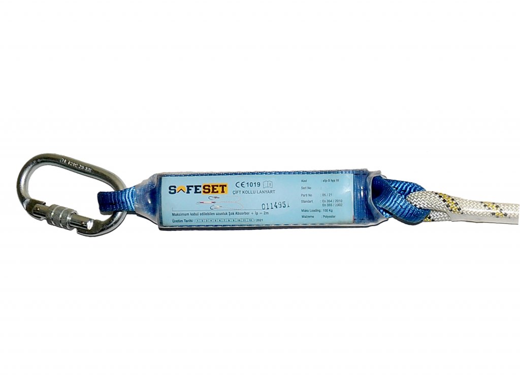 Şok Emici Çift Örgülü İp Karabinalı ve K-4 Kancalı