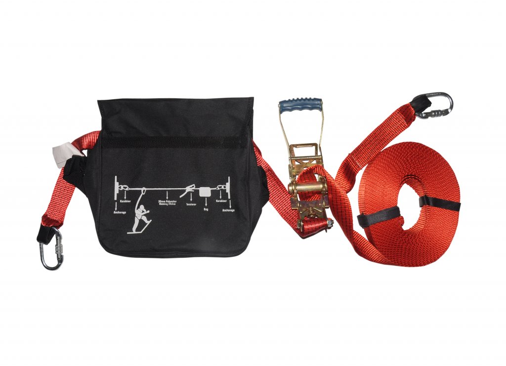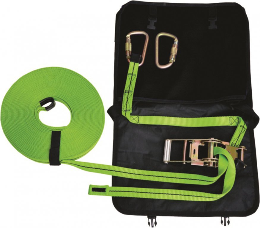 The SF-163 is a Horizontal Anchorage Lifeline composed of 30 mm Polyester webbing fitted with the SAFESET Tensioner that provides easy tensioning of the lifeline between two supports.Supplied with auto-locking steel carabiner at both ends.The entire system is permanently attached to the assembly and is also delivered in a bag which allows the user to easily carry the system with the help of the comfortable shoulder hanging strap provided to the bag. Once assembled you can easily put the extra webbing back into the Bag, not distributed along its length. Conforms to EN 795 Class B Total 20m Available length so user can use it for a length ranging from 5m to 20m. Tested and approved for simultaneous use by two users. Once the Lifeline is mounted, the user can easily attach his Harness Rope to the Lifeline using the Karabiner. In this way, movement along its length while keeping the user safe and secure at all times.